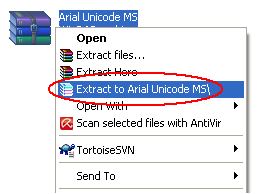 Sau khi file được tải xong, nhấp chuột phải vào tên file rồi chọn Extract to Arial Unicode Ms\ (máy tính của bạn đã có phần mềm Winrar đã được cài đặt) để giải nén file.